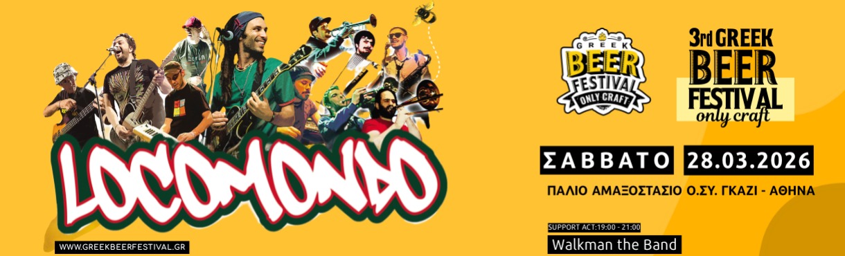 להקת Locomondo - הלהקה הותיקה אשר משלבת בין המוסיקה היוונית העממית לבין מקצבי הרגאי והרוק, תופיע במתחם הארועים של גאזי במסגרת פסטיבל הבירה, ביום שבת 28/3/26 בשעה 21:00. המתחם יפתח לקהל בשעה 18:00 והחל מהשעה 19:00 יתקיים מופע של מסיבת ריקודים עם להקת Walkman the band. לרכישת כרטיסים.